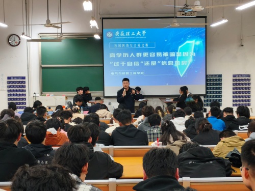 随后,王远警官与现场同学进行互动交流。他详细解读了防范电信诈骗的“三不一多”核心原则:未知链接不点击、陌生来电不轻信、个人信息不透露、转账汇款多核实。王警官结合真实案例指出,这四句话看似简单,但真正面对诈骗时,学生往往容易失去理智,必须反复强化、警钟长鸣。